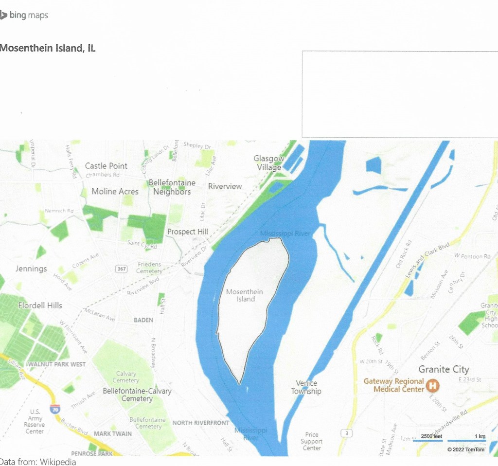 About six years earlier, Rose’s mother, Mary Mosenthein, a Swiss immigrant, had moved her houseboat, The Baby Mine, from the foot of Buchanan Street to the fertile island with her six children after separating from her third husband, Charles Mosenthein. Mary and her children farmed the island as squatters. As its only occupants, they endured countless floods, perils, and hardships to transform it. On June 24, 1898, the Edwardsville (Illinois) Intelligencer praised the “wonderful perseverance on her part in an endeavor to provide for her family. She took the island a wilderness and transformed it into a productive field, and has remained there constantly, surmounting innumerable obstacles.” Nevertheless, the island’s economic potential and growing size due to changes in the river channel attracted powerful speculative interests whose lawsuits and pressures soon forced Mary’s removal.